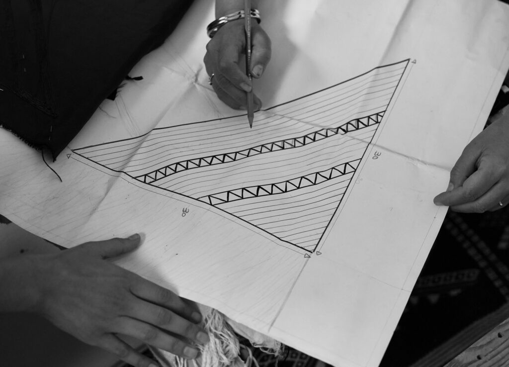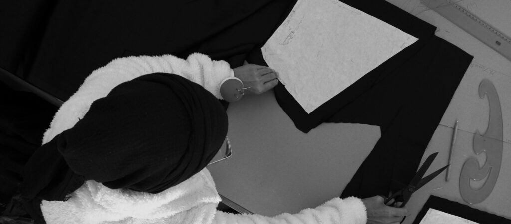 The next step is patronage — crafting the pattern that gives structure to imagination. Each piece is cut, assembled, and tested through the essayage (fitting) process, where adjustments are made by hand to achieve perfect proportion, comfort, and movement. This stage is where precision meets intuition.